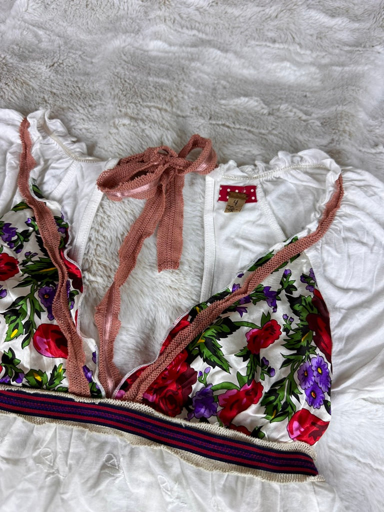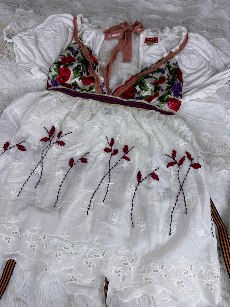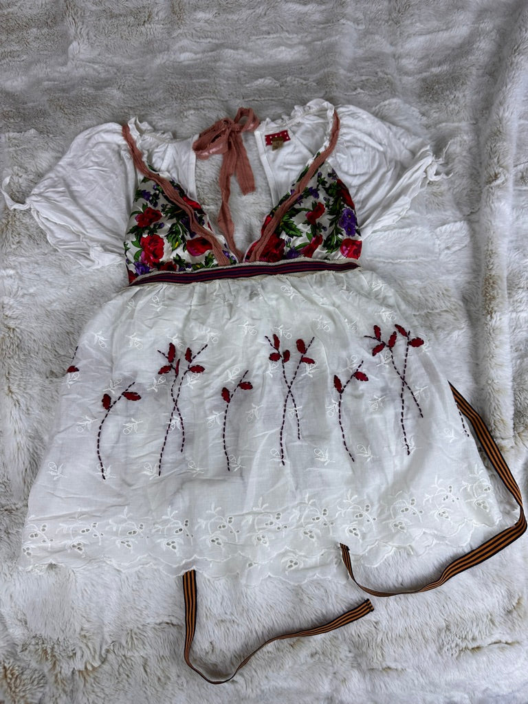 Free People Floral Embroidered Babydoll Blouse - Small