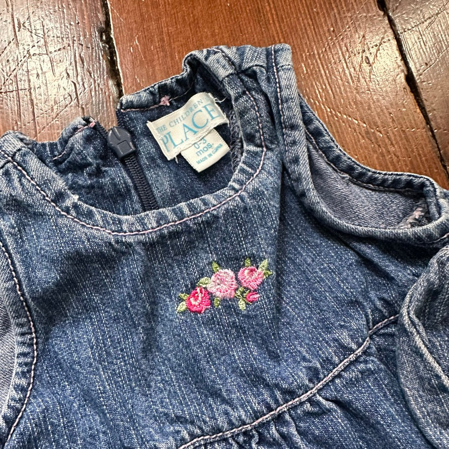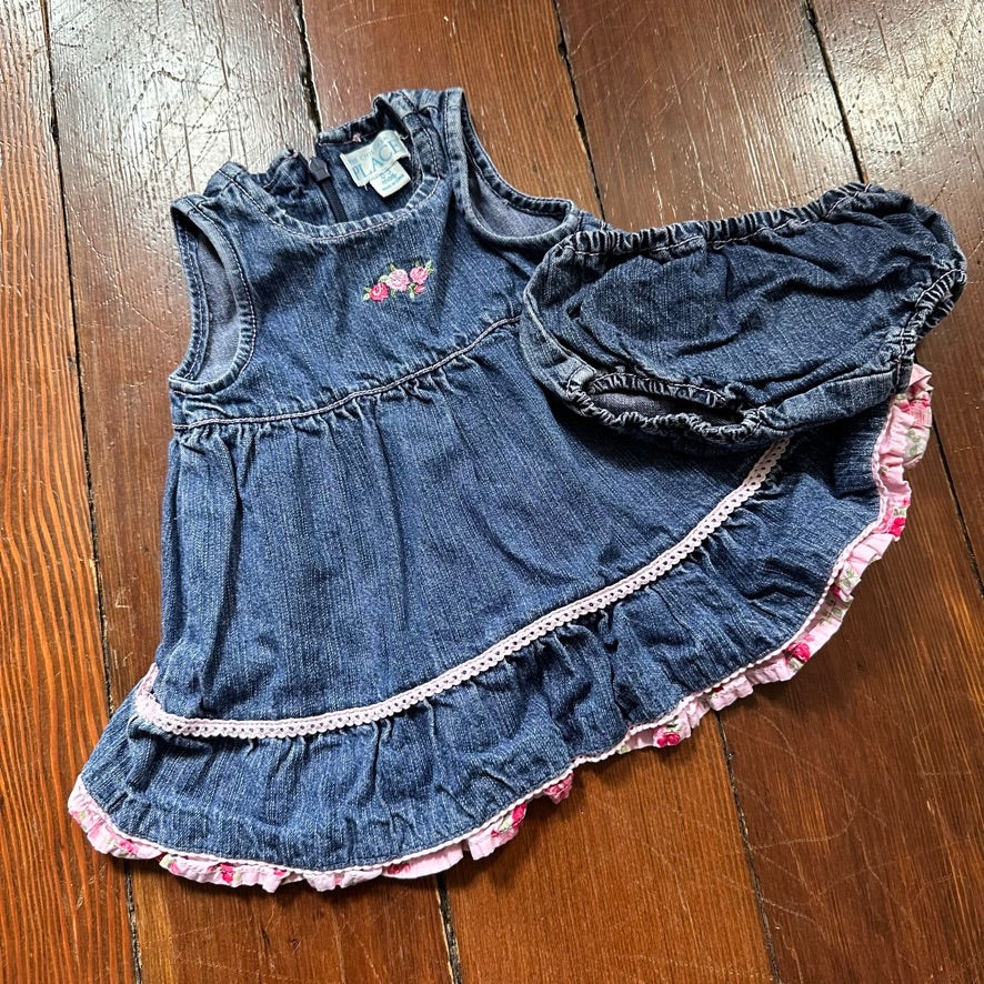 Vintage Denim & Pink Dress with Bloomers - 0-3 Months